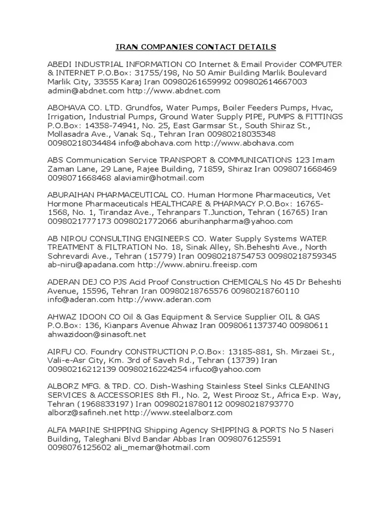Industrial goods, trade & services p.o.box: Iran khodro has been named the top iranian company. Find high quality oil companies in iran suppliers on alibaba. The phone numbers and email ids given on this page are meant for business enquiries only and not for lodging complaints/grievances. Buy iran email list today to boost up your email marketing campaign.